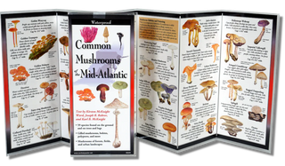 Compact pocket field guide highlighting common mushroom species native to the Mid-Atlantic region.